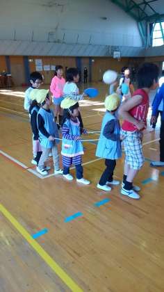 5年生と八幡山幼稚園の年長組さんとの体育館遊びは、列車ごっこや風船遊びなど、5年生が工夫を凝らして相手をしてくれました。