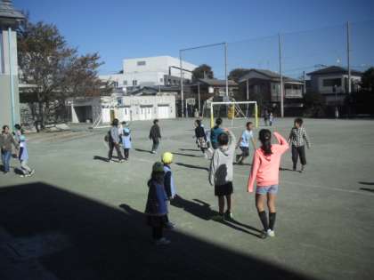 5年生が、八幡山幼稚園の園児との交流活動を行いました。小学校に園児の皆さんをお迎えし、校内を案内したり、校庭で楽しく遊んだりしました。