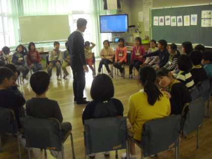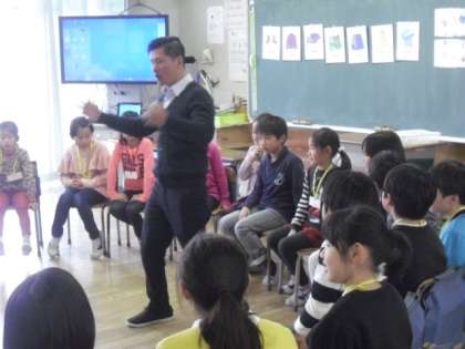 今日は中学年で英語の授業が行われました。3年生の教室では、フルーツバスケットの形式でのアクティビティで盛り上がりました。ALTのキー先生は、ジェスチャーを交えながらとても楽しく英語を教えてくれるので、子どもたちはみんな大好きです。どんどん英語が身近なものになってきています。