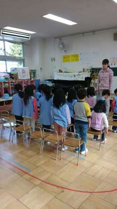 お誕生会の出し物の歌の練習をしたり、先生のお話を聞いたりと活動に余裕が出てきました。今日のお誕生会での出し物は、年少さんです。皆さんが、楽しんでくれるかな?ドキドキです。