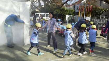 煙中訓練がありました。火災の時には、煙がとても怖いことを知りました。煙の中では、姿勢を低くして鼻と口をハンカチで押さえ、壁を触りながら歩くことを教わりました。