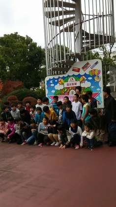 森永製菓鶴見工場に着きました。記念撮影をして、エンゼルホールで、工場の説明を聞きました。