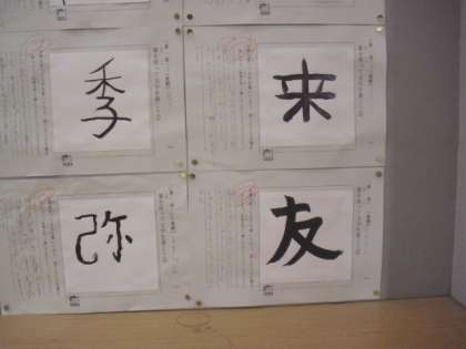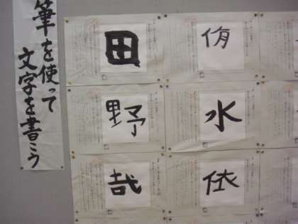 自分の好きな文字を書きました。初めてとは思えない、立派なできばえです。