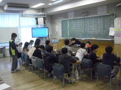 今日は月に一回の委員会活動です。それぞれの委員会で、振り返りと今後の活動についての話し合いがもたれていました。その中で広報委員会は、12月の新聞作りを進め、保健委員会は、各フロアの流しの掃除や石けんの補充などの作業にも当たっていました。八幡山の高学年の子どもたちは、自分の役割をしっかり自覚して、よく働きます。
