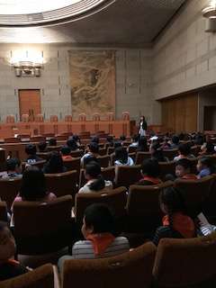 続いて、最高裁判所の見学をしました。とても厳粛な雰囲気に、子どもたちも真剣に説明を聞いていました。