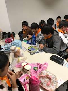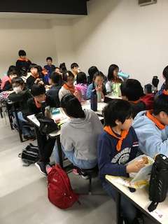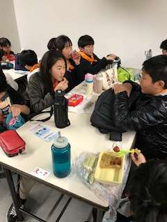 科学技術館に到着。まずは、お弁当です。お腹空いたよね。