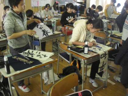 2組では、書写の時間に、冬休みの課題である書き初めの練習をしました。バランスを考えながら、一筆一筆大事に書きます。できあがった作品を、友達同士で見合って、さらに刺激を受けながら練習に励んでいました。