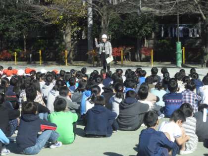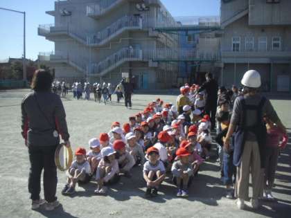 12月の避難訓練は、地震が発生したという想定で行われました。さらに余震の恐れがあるということで、校庭に避難します。「落ちてこない、倒れてこない」場所に、頭や身体を隠すことを常に意識することが大切です。揺れが収まっても安心しないで、緊張感をもって訓練ができました。校長先生の話もしっかり聞くことができ、とても立派でした。
