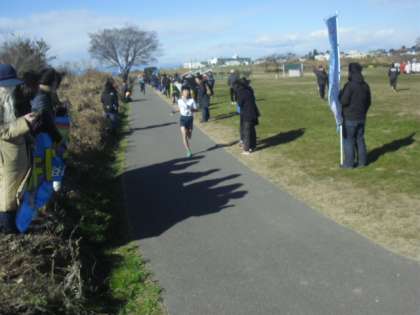 今日は多摩川からの強風が時折吹き、選手を苦しめましたが、どのチームの子どもたちも必死にゴールを目指して走りました。みどりの学び舎チームは、男女とも順調にタスキをつなぎました。八幡山小の選手も、一つでも前へとがんばりました。