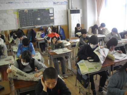 今朝は、今年最後のNIEタイムです。1年生から6年生まで、全校一斉で新聞を読みます。どの学年もだいぶ慣れたようで、自分のお気に入りのページを開いて、夢中になって読んでいました。