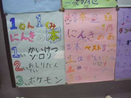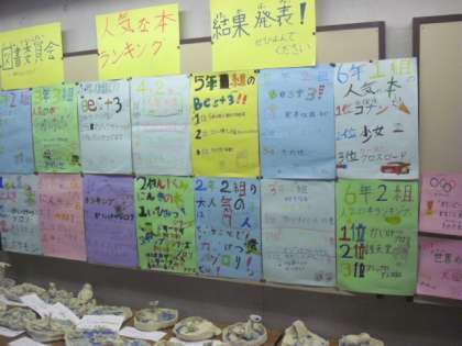 図書委員会で行った、各クラスの「好きな本ランキング」の集計結果が掲示されました。2階のフロアで紹介されています。それぞれの学年・クラスでどんな本が人気なのか、ぜひ立ち止まって比べてみてください。