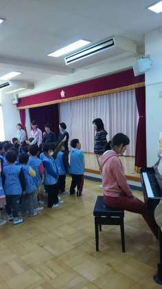 最後に「たこ」と「園歌」を、元気に歌って始業式が終わりました。3学期になると、整列も立派です。
