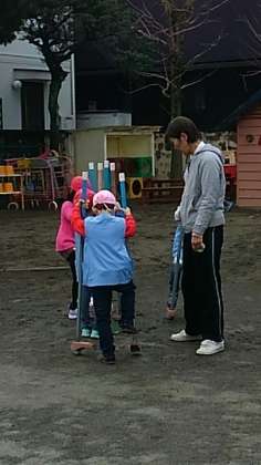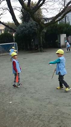 園庭では、お正月らしい、羽根つき、竹馬、バドミントンで、楽しんでいました。
