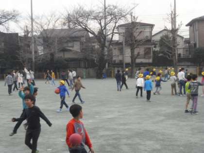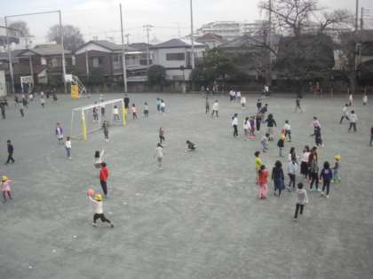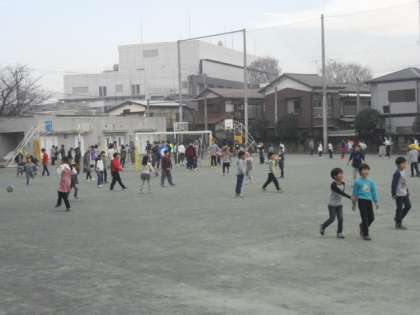 久しぶりに元気な笑い声が校庭に戻ってきました。中休み、全学年の児童が、思い思いに楽しい時間を過ごしていました。今日は少し寒さもゆるんで、身体を動かすにはもってこいの陽気になり、校庭を元気に走り回る子どもたちが多かったようです。