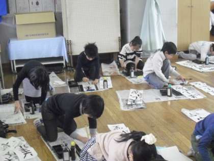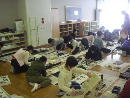 来週の書き初め展に向けて、各学年で学級で書き初めが行われています。冬休みの課題として練習していますが、子どもたちはみんな真剣そのものです。所定の枚数を書き終えても、まだ納得いかずにいる子もいましたが、どれもみんながんばって書いた作品になっています。保護者の皆様には、学校公開でご来校の際に、ぜひご鑑賞いただきたいと思います。