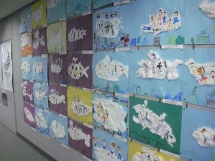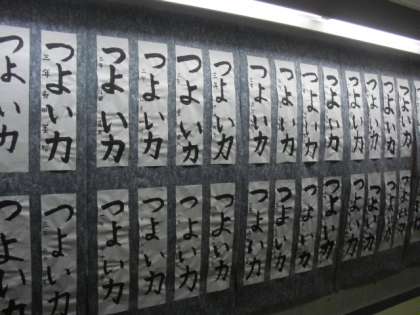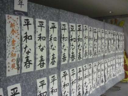 来週の月曜日から書き初め展が行われます。1階昇降口前には3年生、2階のフロアには4〜6年生の毛筆作品が展示されました。1・2年生の硬筆の書き初めは、1階の準備室の前に掲示されています。1年生もしっかりお手本を見て、ていねいに書けています。それ以外にも、1年生の図工の作品が、2階のフロアに掲示されています。来週の15日(月)から1週間展示されていますので、同時に始まる学校公開期間の際にでも、じっくり立ち止まってご覧なっていただければと思います。