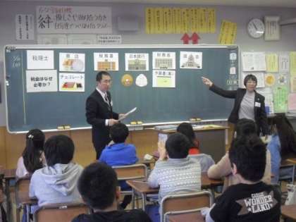 6年生は、東京税理士会北沢支部の税理士の方々を講師にお招きし、税金についての授業を受けました。税金の種類や使い道についてていねいに教えていただいた後、公平な税金の集め方について、自分なりに考える内容の授業でした。6年生は、自分の考えをグループで共有し発表しました。税金のしくみについて、基礎から学ぶよい機会をいただきました。