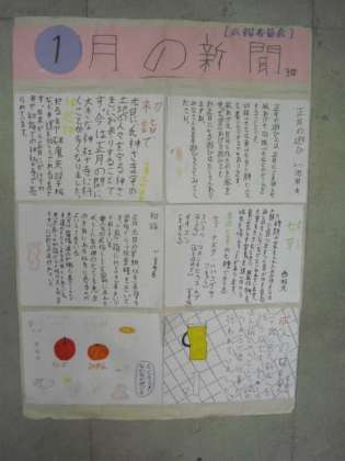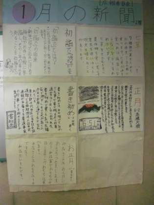 広報委員会が作成した1月の新聞が、各フロアに掲載されています。「初詣」・「七草」・「成人の日」などといった季節の話題が紹介されています。ちょっと立ち止まって見てください。