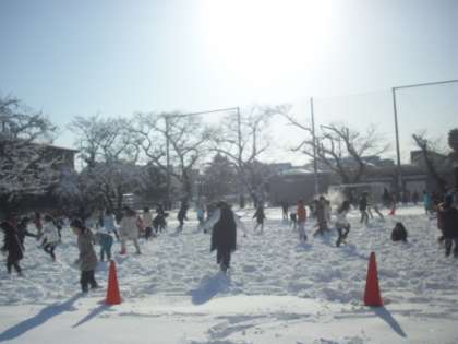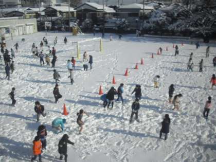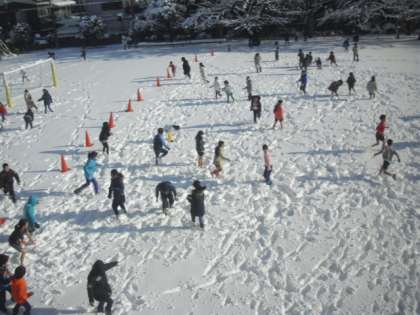 今朝は明日の体育朝会を急遽変更して、全校で雪遊び体験を行いました。これだけの積雪を記録することは、東京ではめったにありません。防寒対策をしっかりして、校庭に集合です。
