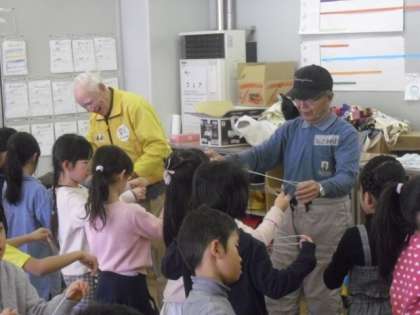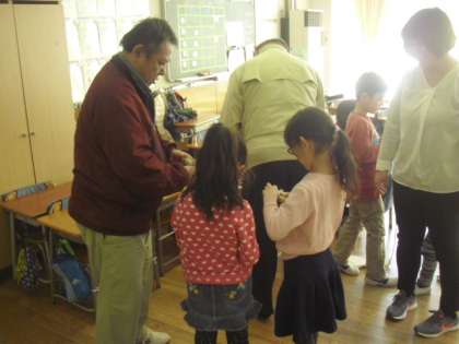 1年生の3・4時間目は、地域の方々をゲストティーチャーにお招きし、昔遊び体験を行いました。折り紙やけん玉、コマ回しなどの懐かしい遊びをていねいに教わり、実施に取り組みます。手先を使って取り組む作業に、子どもたちは苦労しながらも、上手にコツをつかんで楽しめるようになりました。