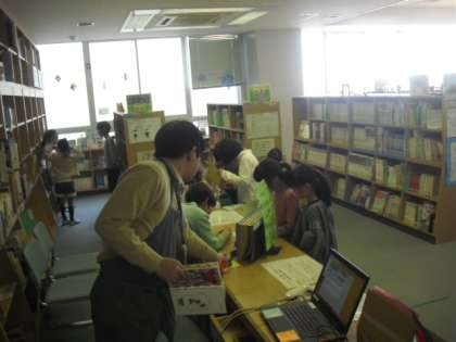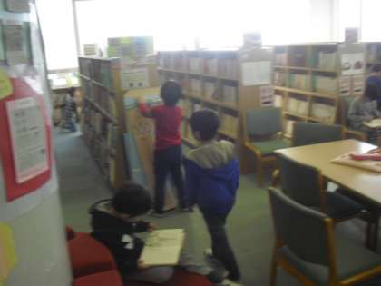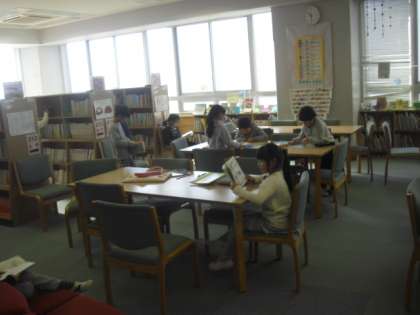 雪の影響で校庭が使えないため、休み時間の図書室は大盛況です。普段あまり来室しない児童も、友達といっしょに読書を楽しんでいました。校庭の雪解けは、まだまだ先になりそうですので、しばらく図書室は大にぎわいですね。