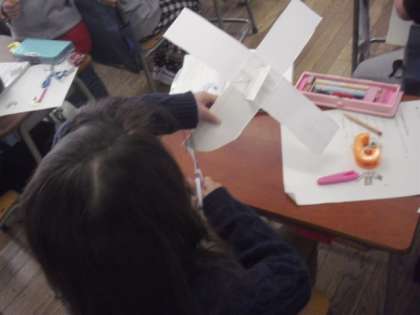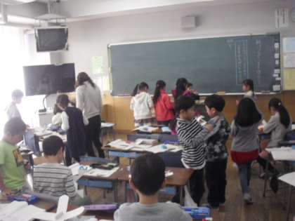 2年1組の国語の授業は、「紙パックで、こまを作ろう」の学習です。教科書の説明文をしっかり読み取った子どもたちは、今日はいよいよ実際にこまを作る課題に挑戦しました。友だち同士で作り方を確認し合い、いろいろと工夫しながら作っていました。とても楽しい雰囲気で授業が進められていました。