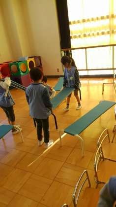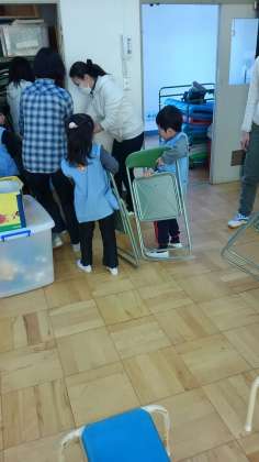 お母さんたちが、座った椅子や長椅子を上手に片付けていました。さすがもうすぐ1年生です。テキパキと働く姿に頼もしさを感じました。