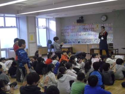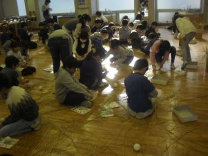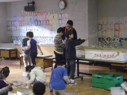 5年生は、外部のゲストティーチャーの方をお呼びして、お米の脱稿を教えてもらいました。収穫された稲をすり鉢に入れ、野球ボールで転がして籾を取ります。どの子もとても楽しそうに作業に当たっていて、お米についての学習を深めることができていました。
