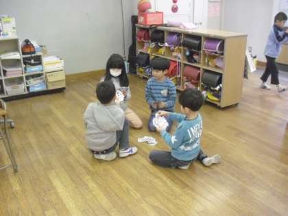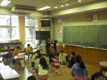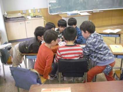 雪の影響で、今日も校庭は使えません。1年生の教室をのぞくと、みんなでゲームをしたり、お絵かきをしたりして上手に過ごしていました。1日も早く校庭で遊びたいところですが、室内でのんびりするのもいいですね。