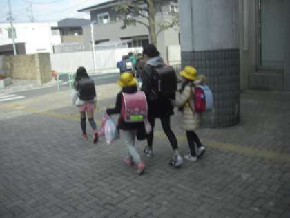 土曜授業が終わり、子どもたちが下校します。1年生は、高学年のお姉さんと手をつないで帰っていきました。明日、明後日とお休みで、みんな笑顔いっぱいです。まだまだインフルエンザが流行っていますので、体調管理には十分に気をつけて、また火曜日、元気に登校してきてくださいね。