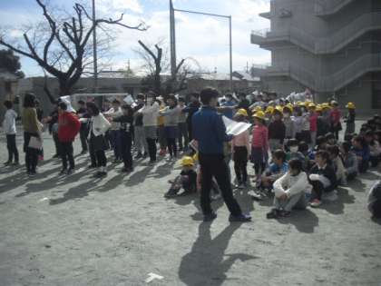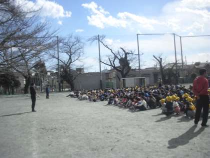 2月の避難訓練は、昼休みに地震が起きたという想定で行われました。久しぶりに校庭が使えるようになり、外遊びをしている子どもたちが多い状況での訓練に、少し戸惑いもあったようでしたが、4分以内で全員避難が完了しました。来月で今年度の避難訓練も最後となります。予告なしで行われますので、しっかりこの1年の成果を出せるようにしましょう。