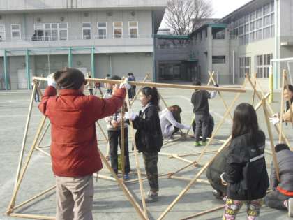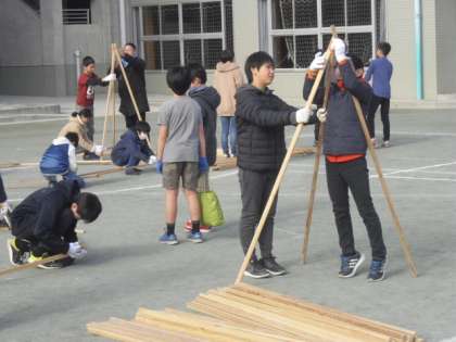 当然一人では家は建てられませんので、自分たちの思いを実現するために、お互いに声をかけ合い、協力して作業は進められます。限られた空間と材料、そして労力を駆使する中で、自然とコミュニケーション能力が養われ、課題解決能力も培わせるのです。