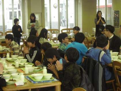 活動終了後、今回は講師の皆さんと一緒に給食をいただきました。楽しく会食しながら、今日の活動をふり返りました。