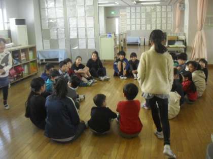 今年度最後となる「なかよし学級」の活動が行われました。1年間お世話になった6年生にありがとうの気持ちを伝え、みんなで楽しく遊ぶ会です。まずは、6年生のリーダーと副リーダーが進行し、引き続き、来年リーダーになる5年生にバトンタッチをしました。各班の5年生も、一生懸命に班をまとめようと奮闘しました。フルーツバスケットやいす取りゲームなど、楽しい遊びが各班で繰り広げられていました。