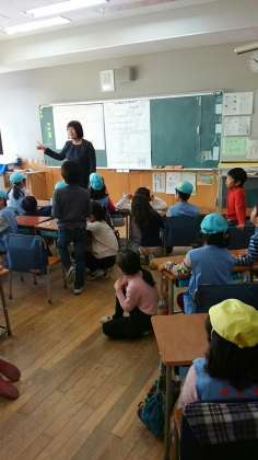 1年生との交流では、昔遊びや塗り絵で遊びました。1年生が上手に声をかけてくれたので、楽しく遊べました。最後に教室の椅子に座らせてもらい、感想を発表しました。