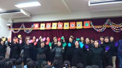 八幡山幼稚園の「おたのしみかい」では、手話を取り入れた歌も披露されました。