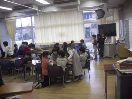 今週は、1年生が3日連続での幼稚園・保育園交流を行っています。小雨の降る中、最終回の今日は、南八幡山保育園の子どもたちが来校してくれました。小学校の教室やお勉強に興味津々の園児たちに、1年生はやさしく出迎えました。