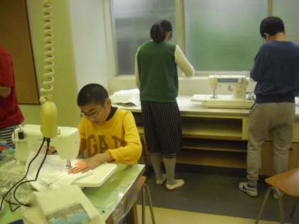 6年生の家庭科の授業は、卒業制作として、各教室に配る雑巾づくりをしています。この2年間の裁縫の学習で、上手に使いこなせるようになったミシンを使っての製作です。下級生に使ってもらおうと、6年生一人ひとりの思いがしっかり込められた、立派なできばえになっていました。