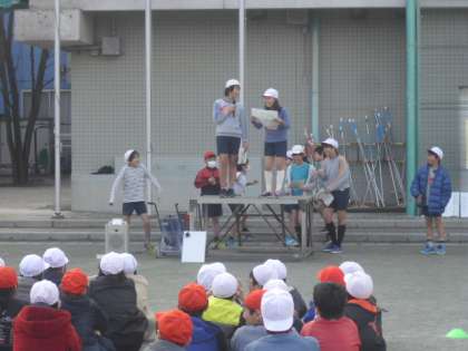 毎年恒例になっている、5・6年生によるお別れスポーツ大会が、校庭で行われました。5年生が企画をし、卒業を控える6年生との親睦を深めると同時に、お世話になった感謝の気持ちを伝えながら、6年生にスポーツで挑みます。司会・進行も5年生の実行委員が中心となり、いよいよ競技がスタートします。