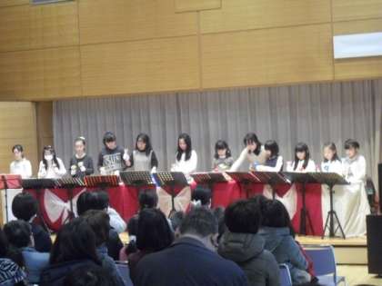 本校で活動している「ベルキッズ」の子どもたちは、たくさんの来場者の前でも堂々として演奏を披露し、日頃の練習の成果を遺憾なく発揮していました。ハンドベルの素敵な音色に、会場はとてもほっこりした雰囲気になりました。いつも指導していただいている地域の皆様に感謝です。ありがとうございました。メンバーの子どもたちもよくがんばりましたね。