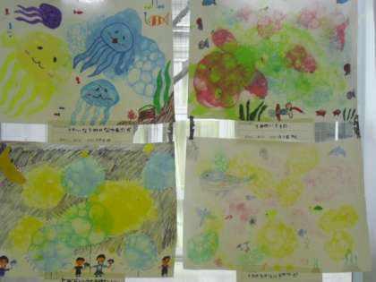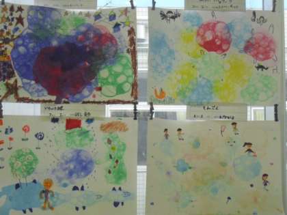 こちらの作品は、色のついたシャボンを使って、描きたい絵をイメージして仕上げていきました。