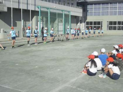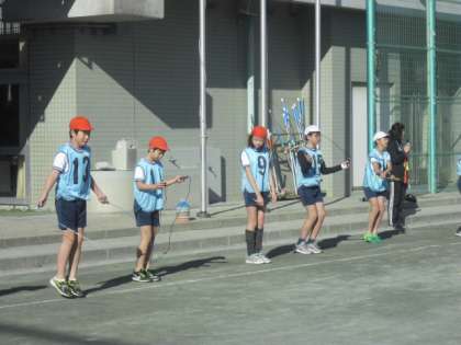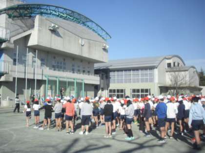今朝の体育朝会は、短なわ集会です。各クラスで取り組んでいるなわ跳びの練習を、全校で行います。雪の影響で、なかなか校庭での練習ができませんでしたが、どの子どもたちはやる気満々です。体育委員会の児童のもお手本に従って、全校で一斉に取り組みました。