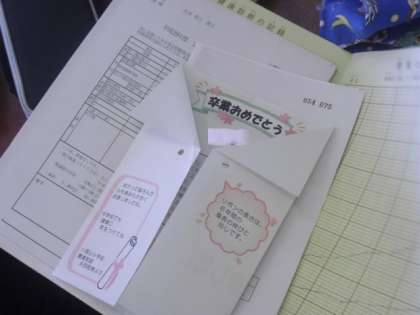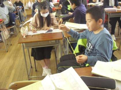 6年2組の教室では、6年間の成長の記録が記された「けんこうカード」が返却されました。1年生からこの6年間で伸びた身長の長さのリボンで、メッセージカードがくくられていて、子どもたちはそれを伸ばして、自分の成長ぶりを喜んでいました。