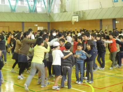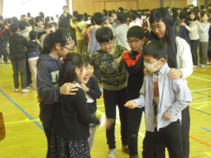 3月の土曜授業日、朝は児童集会が体育館で行われました。集会委員会の児童が企画した「じゃんけん列車」で盛り上がりました。男女いっしょでいろいろな学年が混ざり、最後には大きな列になりました。異学年が交流できる楽しい活動で、楽しい時間になりました。集会委員の児童のみなさん、準備などありがとうございました。