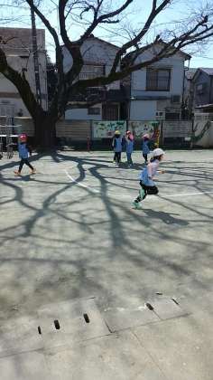 八幡山幼稚園の遊びの様子です。ポカポカ日射しが温かくて春の陽気です。