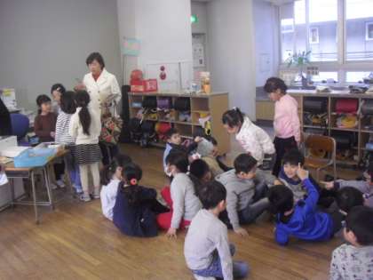 今朝も早朝から読み聞かせに来てくださったお母さんたちを迎えるために、子どもたちで声をかけ合って集合させる様子が見られました。1年生はみんなが揃うまで、場をつなぐために中心となってジャンケン大会をする子も登場して、とてもいい雰囲気です。みんなで読み聞かせを楽しみたいという思いが、そのような行動になっているのかもしれません。そんな子どもたちのために、今朝も楽しい本を準備してくださり、本当にありがとうございます。