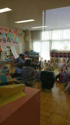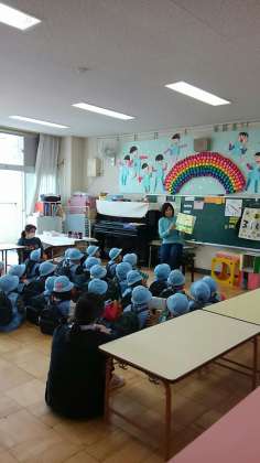 八幡山幼稚園の修了式の予行の後で年長さんは、担任の先生の読み聞かせやゲームを楽しんでいました。
