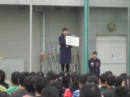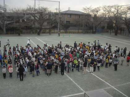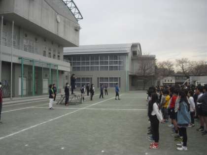 どんよりした空模様での全校朝会。今年度最後となります。最後も8時30分に全員集合して、始めることができました。校長先生からは、信頼の貯金をつくろうというお話がありました。この1年で築いた友達との信頼関係を大事にして、新年度を迎えたいものです。残り1週間ですが、しっかり過ごしていきましょう。