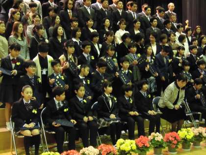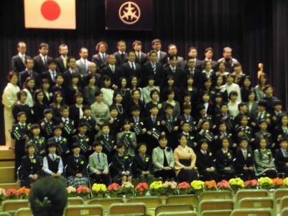 保護者の方々との記念写真。一生に一度しかないこの瞬間を、しっかり記憶に残します。写真にうつった子どもたちの表情は、安堵と喜びでいっぱいでした。