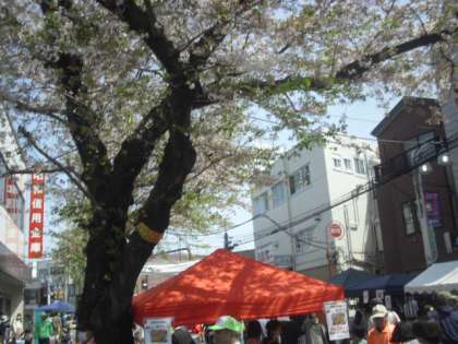 春の日差しがまぶしい4月。毎年恒例になっている上北沢町会主催の桜まつりが開催されました。満開の桜並木の通りには、地元の方々による出店が並び、たくさんの人たちで賑わっていました。八幡山小の子どもたちもたくさん遊びに来ていました。